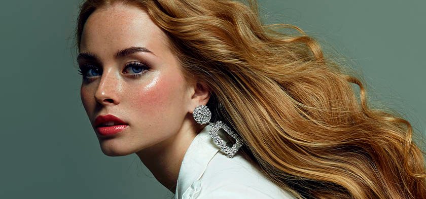 Лучший выбор для голубоглазых — оттенки медного, коричневого, золотого и персикового.