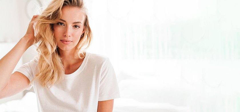 - Интенсивность тона кожи. На фоне насыщенных оттенков 6–8-го уровня светлости смуглое лицо смотрится ярче. Обладательницы очень светлой молочной кожи могут выбрать теплый блонд любого уровня светлости.